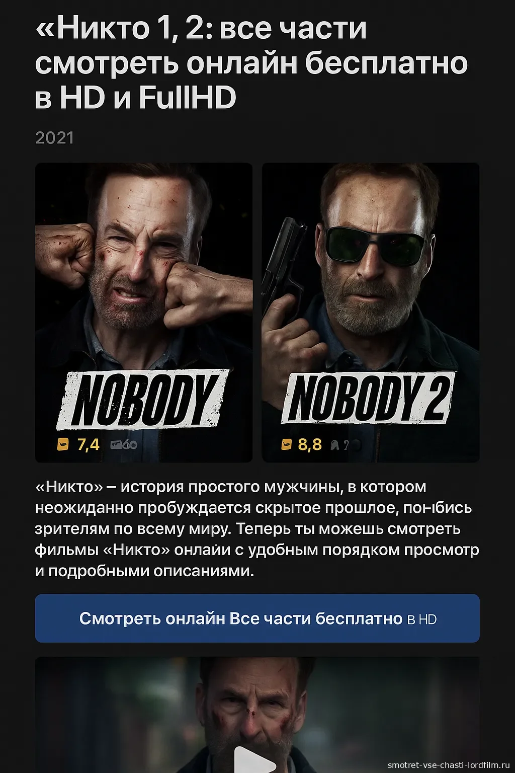 Никто 1, 2: все части Подряд Смотреть Онлайн Бесплатно в HD / FullHD на Русском Языке на Лордфильм